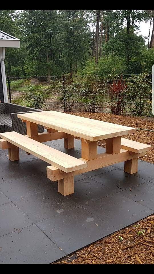 with Built-In Benches – Heavy Duty Wooden Garden & Patio Dining Table for Backyard, Lawn, Farmhouse & Outdoor Seating